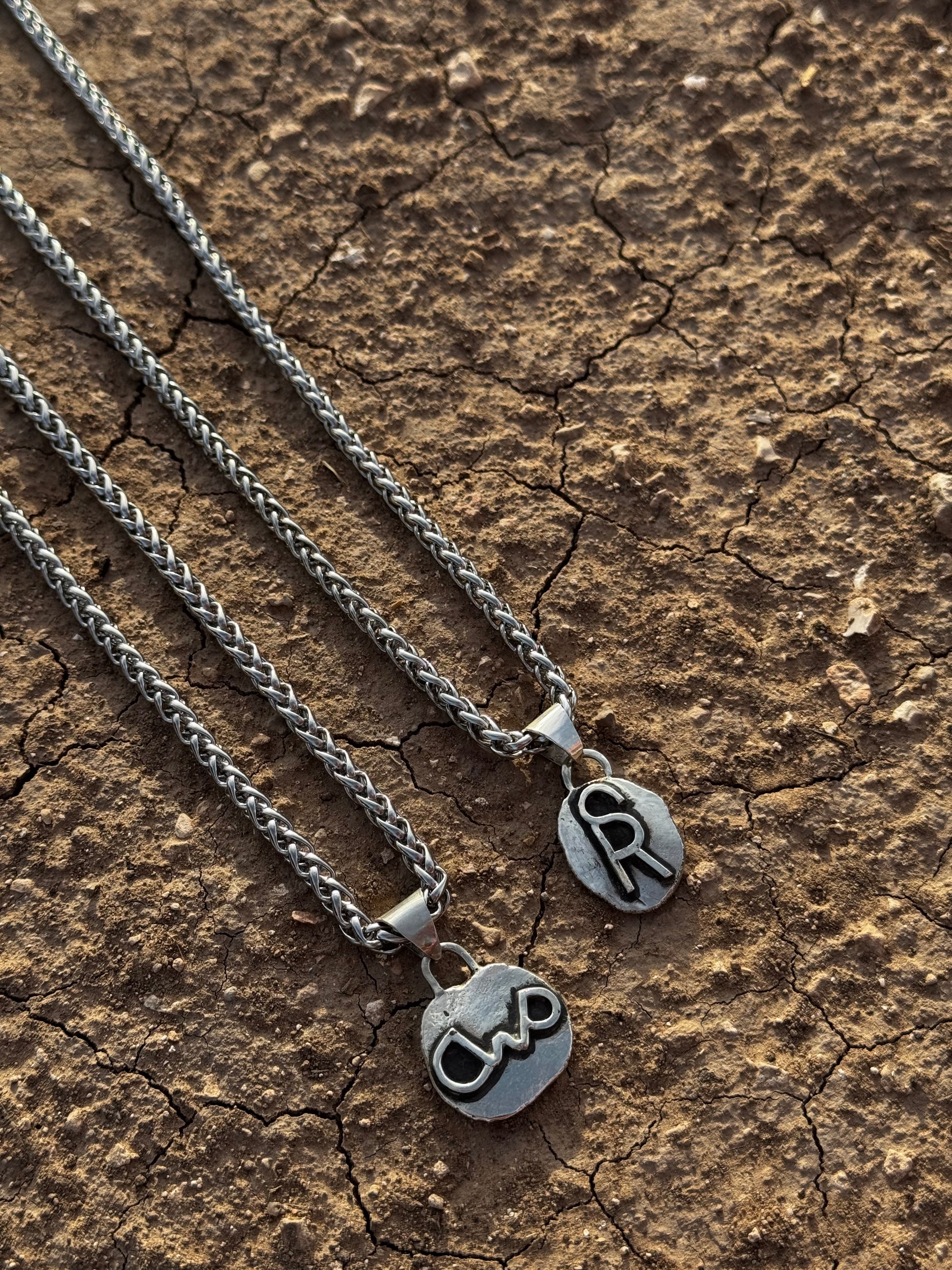 FOR THE MEN. a chunky hand made silver medallion with your brand, THIS LISTING IS WITHOUT THE TURQUOISE PENDANTS, it will be just the custom pendant on a sterling silver bail & chain. On a 20” STAINLESS STEEL CHAIN (can do bigger for an additional cost or smaller lengths if needed) with a lobster claw clasp. If requesting a different type of chain please let me know upon ordering. (Price may change with different type of chain)